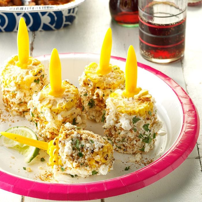 Corn on the cob is a summertime staple, but it’s not the most party-friendly food to serve unless you take inspiration from this recipe! To make corn pops, skewer chunks of grilled corn onto corn holders. Then, slather them with flavored mayonnaise and top with cheese and spices. Keep your knife sharp so cutting the corn cobs into thirds is a breeze.