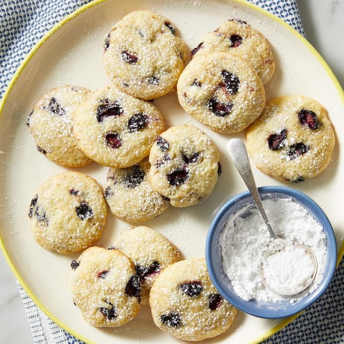 Fresh blueberries and lemon zest make these cookies the perfect accompaniment to tea time. They’re light, citrusy and soft.