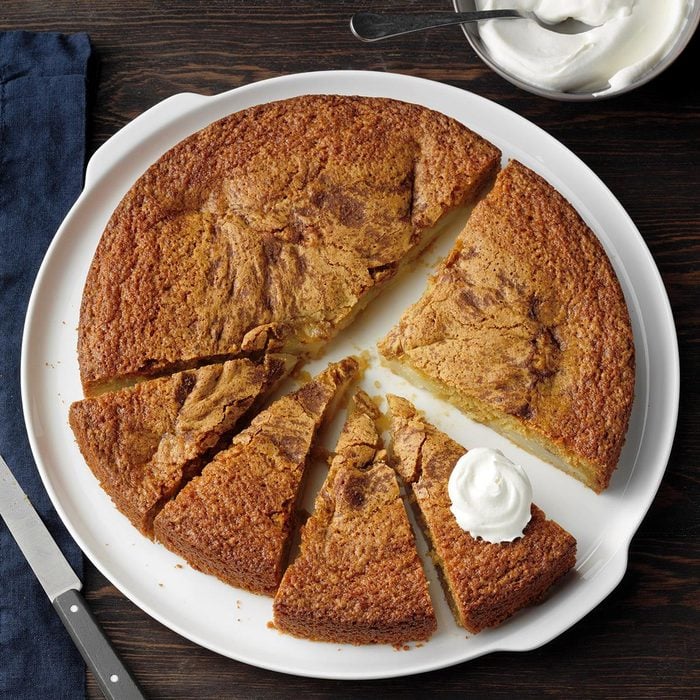 This olive oil cake is sweet and moist with flavors of pear, brown sugar and cinnamon. Serve it with a dollop of whipped cream or a scoop of vanilla ice cream.